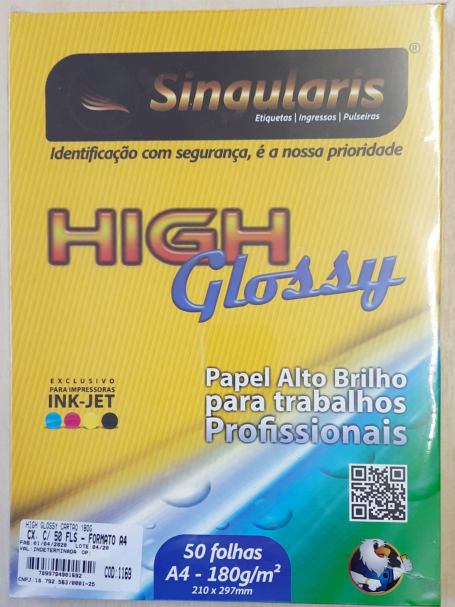 High Glossy - Papel alto brilho - A4 - 180g/m2 - cx. com 50 folhas - Singularis