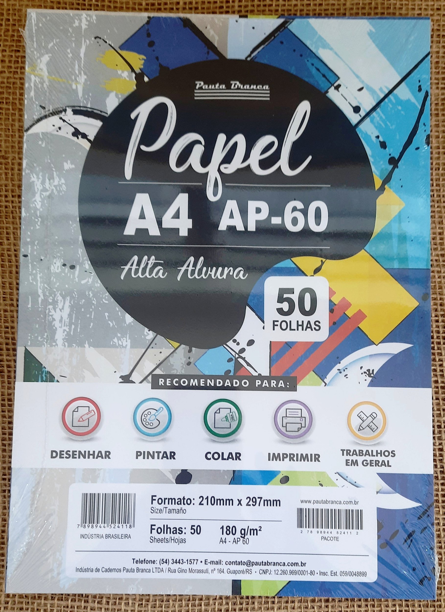 Papel de desenho A4 - AP - 60 - 18Og/m2 - 50 folhas - Pauta Branca